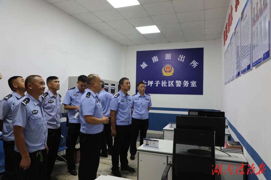 会议分为两个阶段,第一阶段是现场参观城南派出所、西洲街道矛盾调解中心、大坪子社区警务室。与会人员实地观摩了城南派出所接警中心、综合指挥室、矛盾调解中心等基层基础设施建设,大坪子社区警务室民辅警展示各类工作台账,讲解了警保联动、矛盾联调等工作的运行情况。
