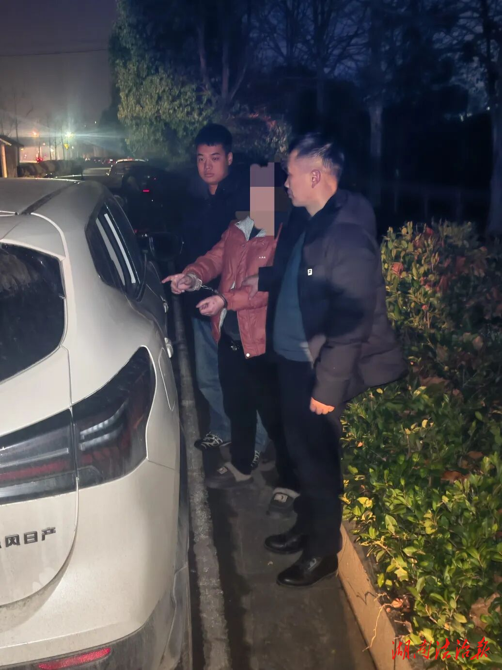 根据这一线索,民警立即对驾驶员的身份进行核查,发现驾驶员系彭某,曾有多次盗窃前科,且近期其常在深夜频繁外出,这一行为特征进一步印证彭某有较大作案嫌疑。1月26日,经过一系列侦查,确定彭某在衡阳市衡山县后,所长肖伟辉立即带队驱车前往。抵达后,民警第一时间与当地公安机关取得联系,迅速确定彭某的具体住址后,发现涉案车辆正停放在彭某住处的路边。