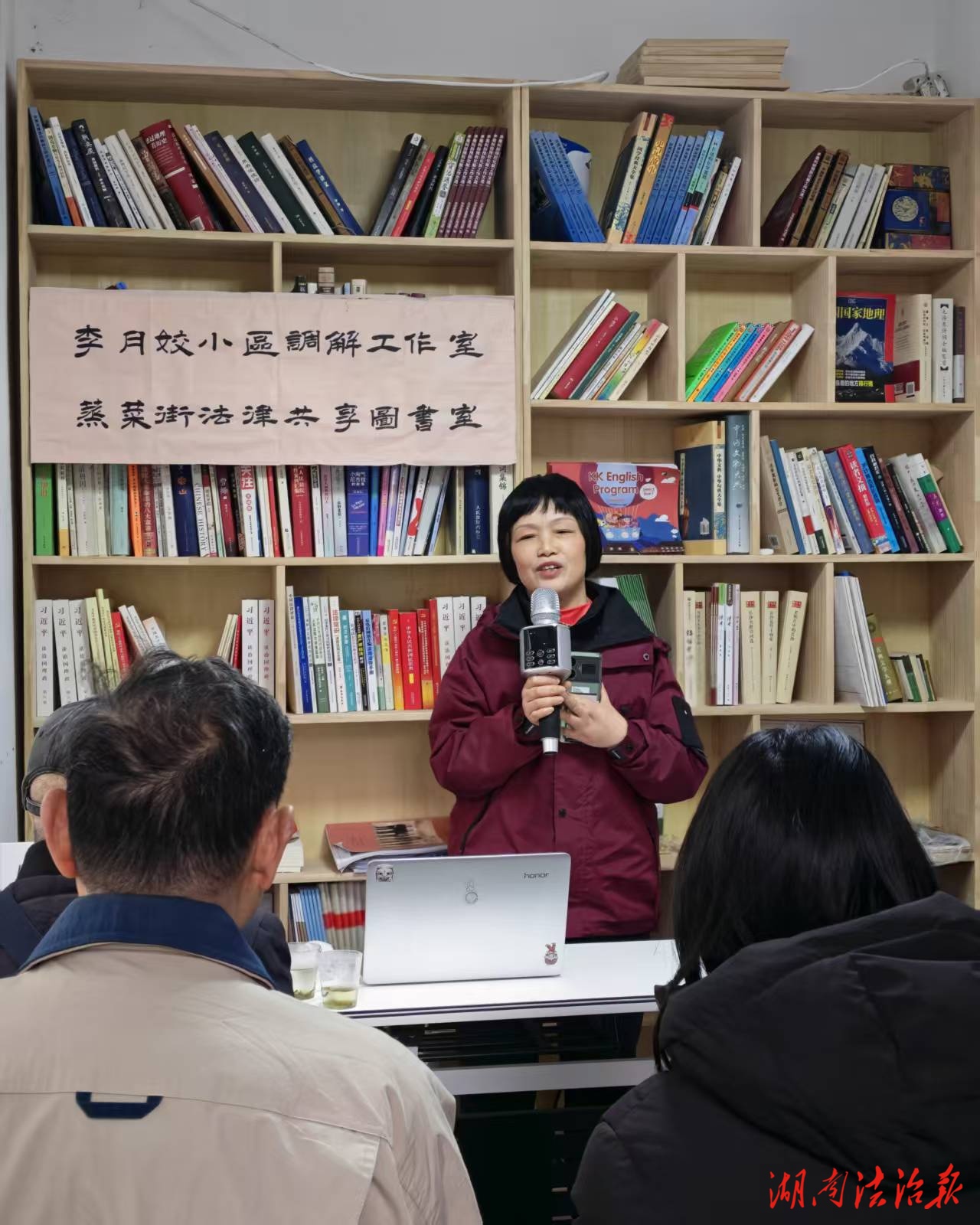 活动由五里牌社区蒸菜街小区党支部书记、蒸菜街法律共享图书室主理人李月姣主持。她在开场导引中介绍了活动的背景和意义,并感谢湖南湘行律师事务所律师等法律志愿者及小区党员群众的热情参与。